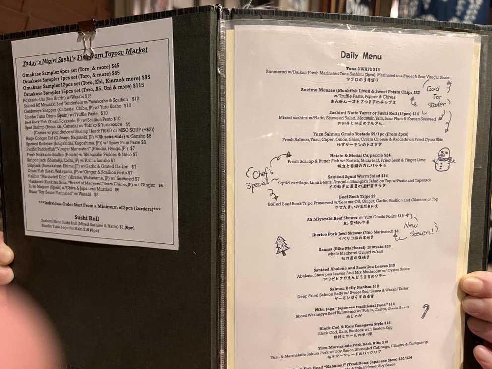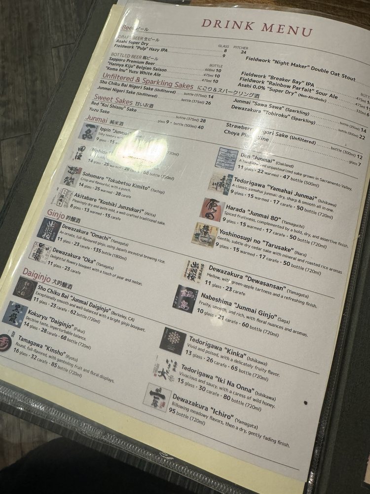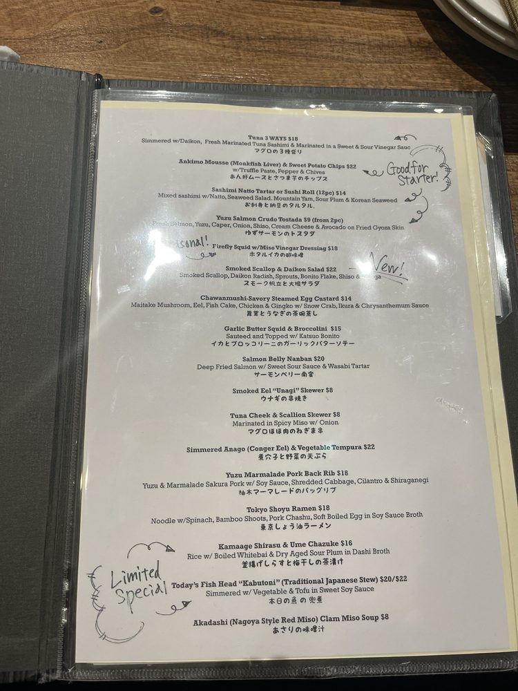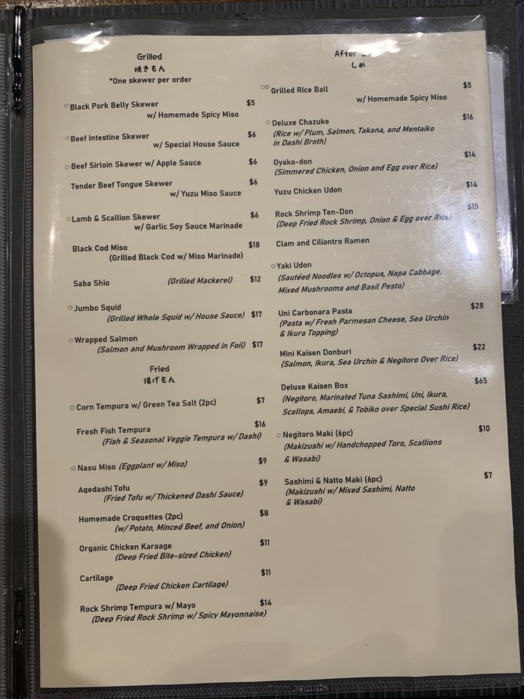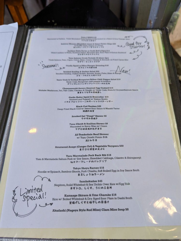 Introducing the menu at Kiraku, an Izakaya specializing in Tapas/Small Plates in Berkeley, CA. This vibrant restaurant offers a variety of dishes, from Takoyaki and Grilled Miso Salmon to Corn Tempura and Homemade Daikon Tsukemono. Highlights include the Snow Crab Chawanmushi, Sashimi Salad, and Yuzu Cheesecake. The menu caters to Pescatarians, Vegans, and those with limited Vegetarian options. With a cozy and inviting ambiance, Kiraku provides excellent service, making every dining experience memorable. The extensive drink selection includes Oi-Ocha Green Tea and Kimino Sparkling Yuzu. Overall, Kiraku is the perfect spot for a date night or casual dinner, offering a fusion of traditional Japanese flavors with a modern twist.
